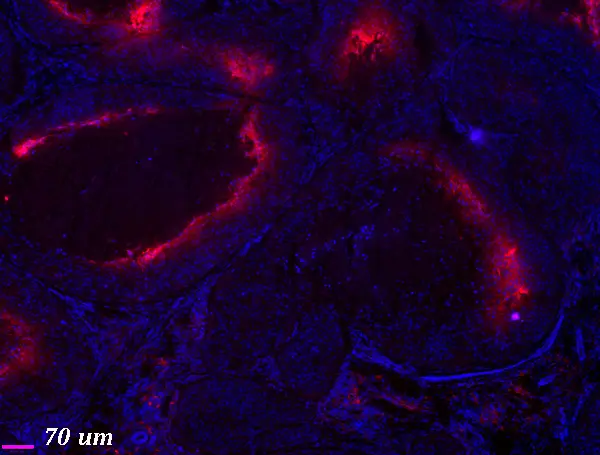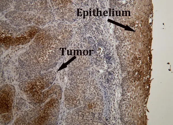 Hypoxia (brown) in human tumor and dysplastic epithelium